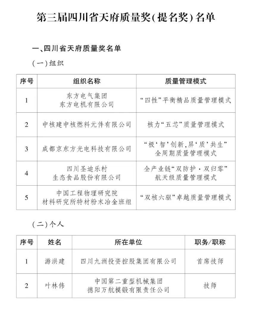 近日,由中國企業(yè)改革與發(fā)展研究會組織評選的“2025中國企業(yè)改革發(fā)展優(yōu)秀成果”正式公布。《立足國家戰(zhàn)略需求 驅(qū)動航空模鍛產(chǎn)業(yè)高質(zhì)量發(fā)展——萬航模鍛“三位一體”發(fā)展模式的探索與實踐》榮獲2025中國企業(yè)改革發(fā)展優(yōu)秀成果三等獎。 作為國務(wù)院國資委國有企業(yè)改革深化提升行動基層企業(yè)聯(lián)系點葉林偉榮獲四川省天府質(zhì)量獎2026-01-19