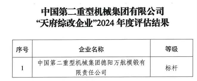 近日,四川省政府國(guó)有資產(chǎn)監(jiān)督管理委員會(huì)公布了“天府綜改企業(yè)”2024年度評(píng)估結(jié)果,萬(wàn)航模鍛在全省100戶“天府綜改企業(yè)”中脫穎而出,再次獲評(píng)“標(biāo)桿”企業(yè)。