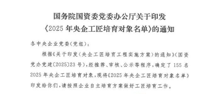 央企工匠培育工程是國務院國資委黨委深化落實《中共中央 國務院關于深化產業(yè)工人隊伍建設改革的意見》,充分發(fā)揮中央企業(yè)在產業(yè)工人隊伍建設改革中帶動作用的重要舉措。計劃每年培育約150名左右央企工匠,到2035年培育1500名左右央企工匠,努力打造以央企工匠為引領的一流產業(yè)技術工人隊伍,為加快建設世界一流企業(yè)、推進中國式現(xiàn)代化提供人才支撐。